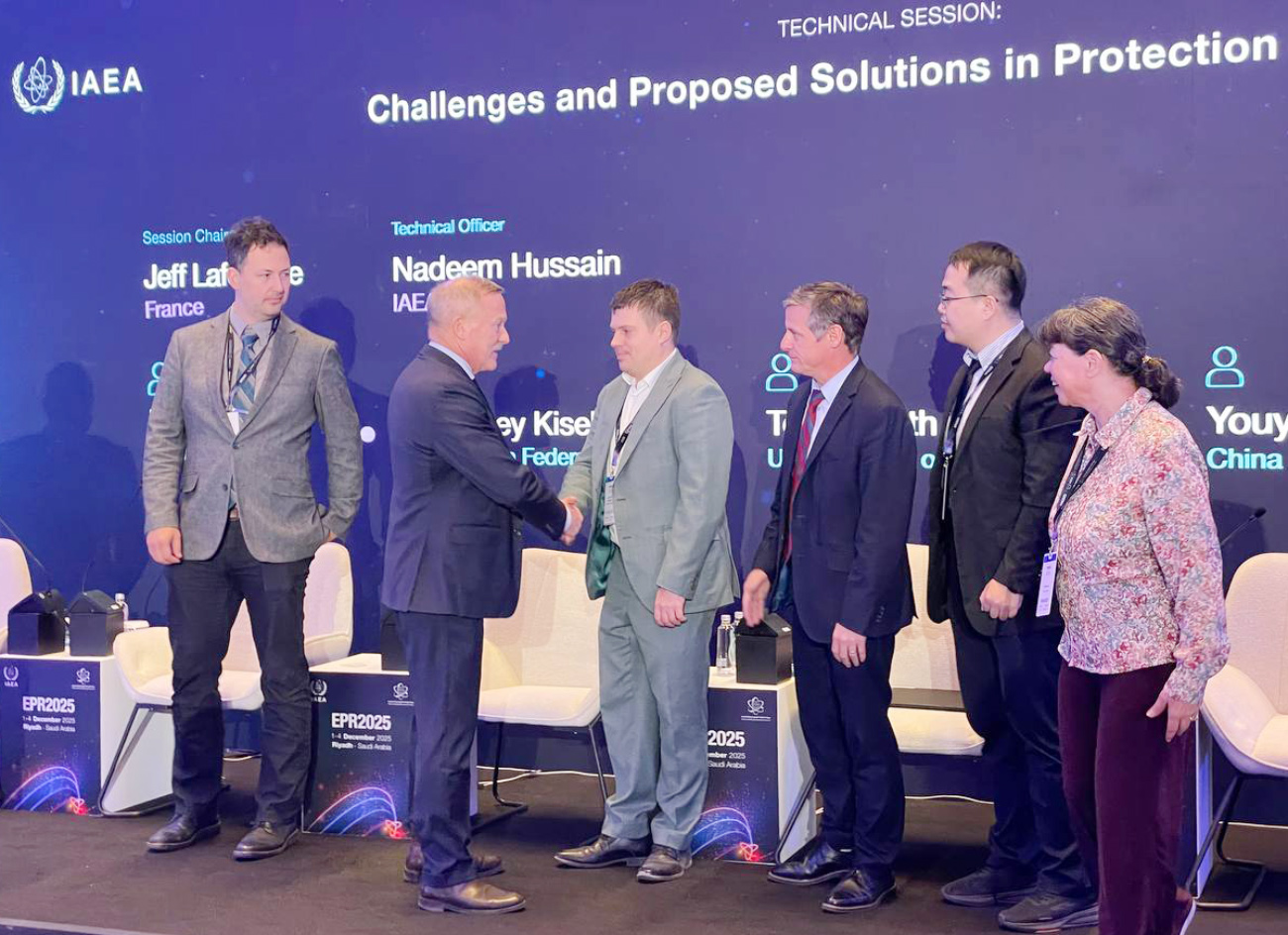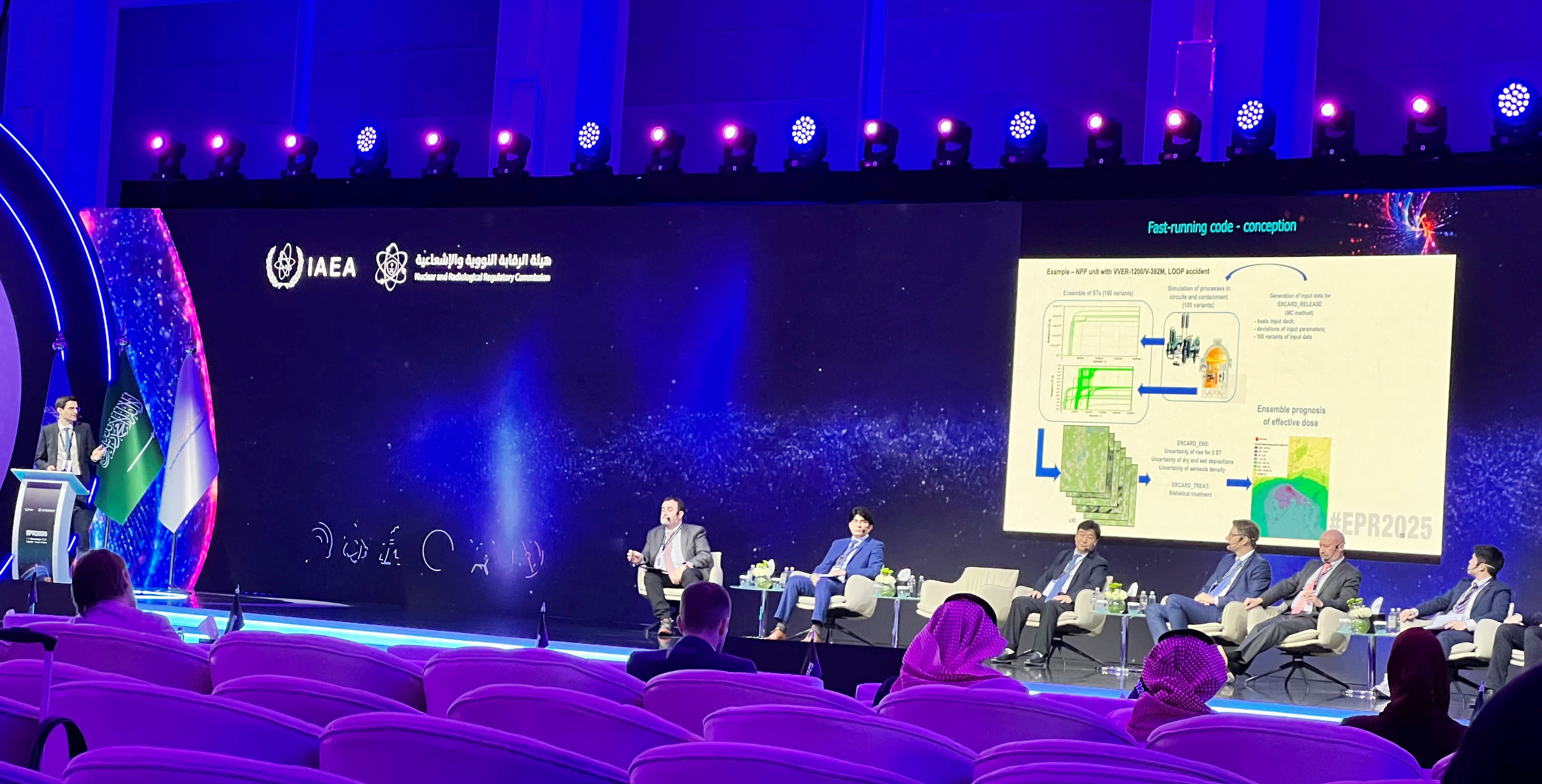 News » Institute News INSTITUTE NEWS17.12.2025Международная конференция МАГАТЭ по ядерным и радиационным аварийным ситуациямС 1 по 4 декабря 2025 года в г. Эр-Рияд (Саудовская Аравия) состоялась Международная конференция МАГАТЭ по ядерным и радиационным аварийным ситуациям «Строим будущее в меняющемся мире» (International Conference on Nuclear and Radiological Emergencies: Building the Future in an Evolving World). В конференции приняли участие более 700 участников из 103 стран-членов МАГАТЭ и 6 международных организаций. В работе конференции от ИБРАЭ РАН приняли участие: заведующий отделением Красноперов С.Н. (с постерным докладом «Computational technique for assessing and predicting the radiation consequences of incidents involving radiation sources»), заведующий отделением, д.т.н. Долганов К.С. (с устным докладом «Development of source term estimation tools for coupled modelling of the radiological consequences of severe accidents»), заведующий отделом, к.т.н. Киселев А.А. (с устным докладом «Scientific, Methodological, and Computational Approaches to Assessing and Prognosis Potential Radiological Consequences»), младший научный сотрудник Коняев П.А. (с постерным докладом «Model for the placement of ARSMS posts for mobile nuclear energy facilities»). Также Красноперов С.Н. был председателем научно-технической сессии «Инновационные технологии в аварийной готовности и реагировании (АГР)». Основными обсуждаемыми темами конференции стали: инновационные технологии для АГР, стратегии защиты при радиационных инцидентах и авариях, новые реакторные технологии, поддержка служб быстрого реагирования, коммуникации в чрезвычайных ситуациях, медицинское реагирование, механизмы координации и сотрудничества в области готовности к чрезвычайным ситуациям и реагирования на них. В рамках конференции была проведена большая выставка достижений стран-участниц, на которой, в том числе, были представлены образцы средств радиационной разведки (наземные и воздушные роботы) и защиты. Участники от ИБРАЭ РАН отметили следующую полезную информацию на конференции: